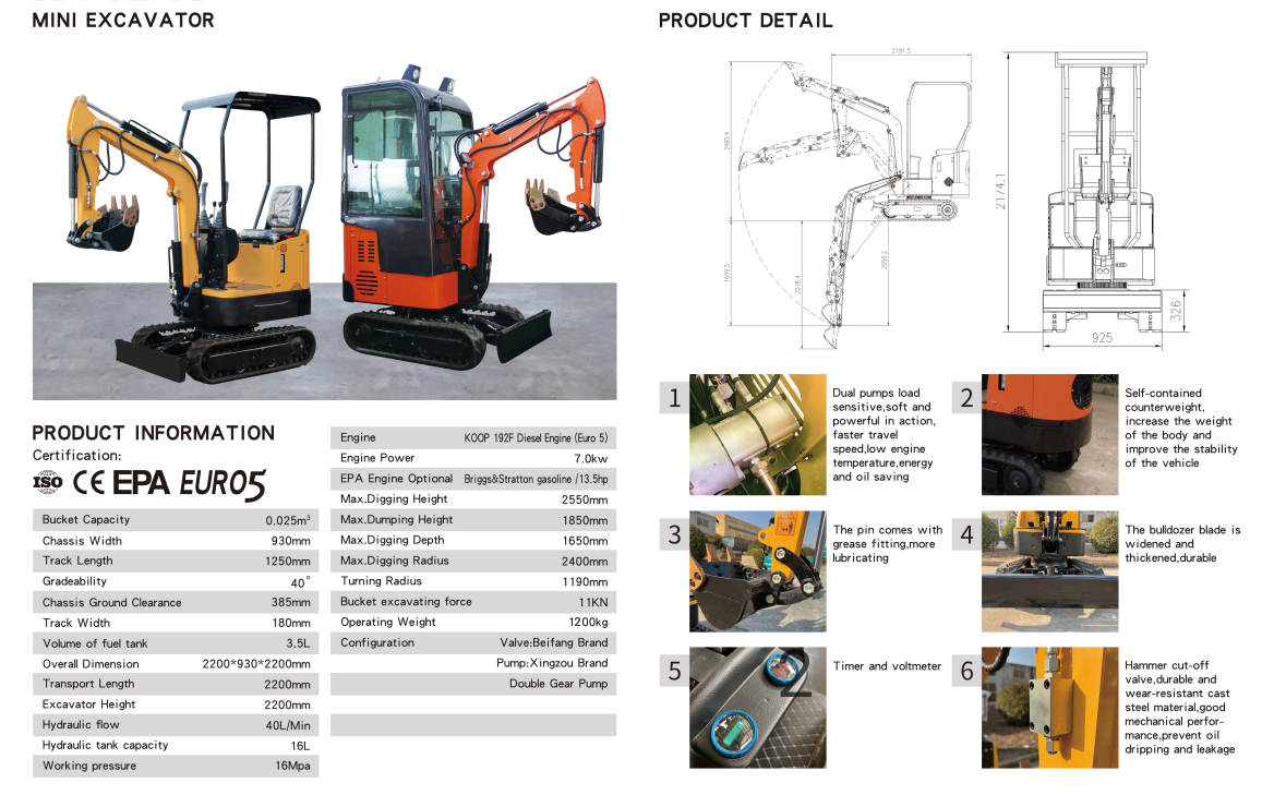 TH12-1 Excavator Features:
